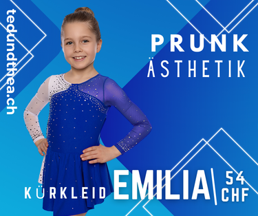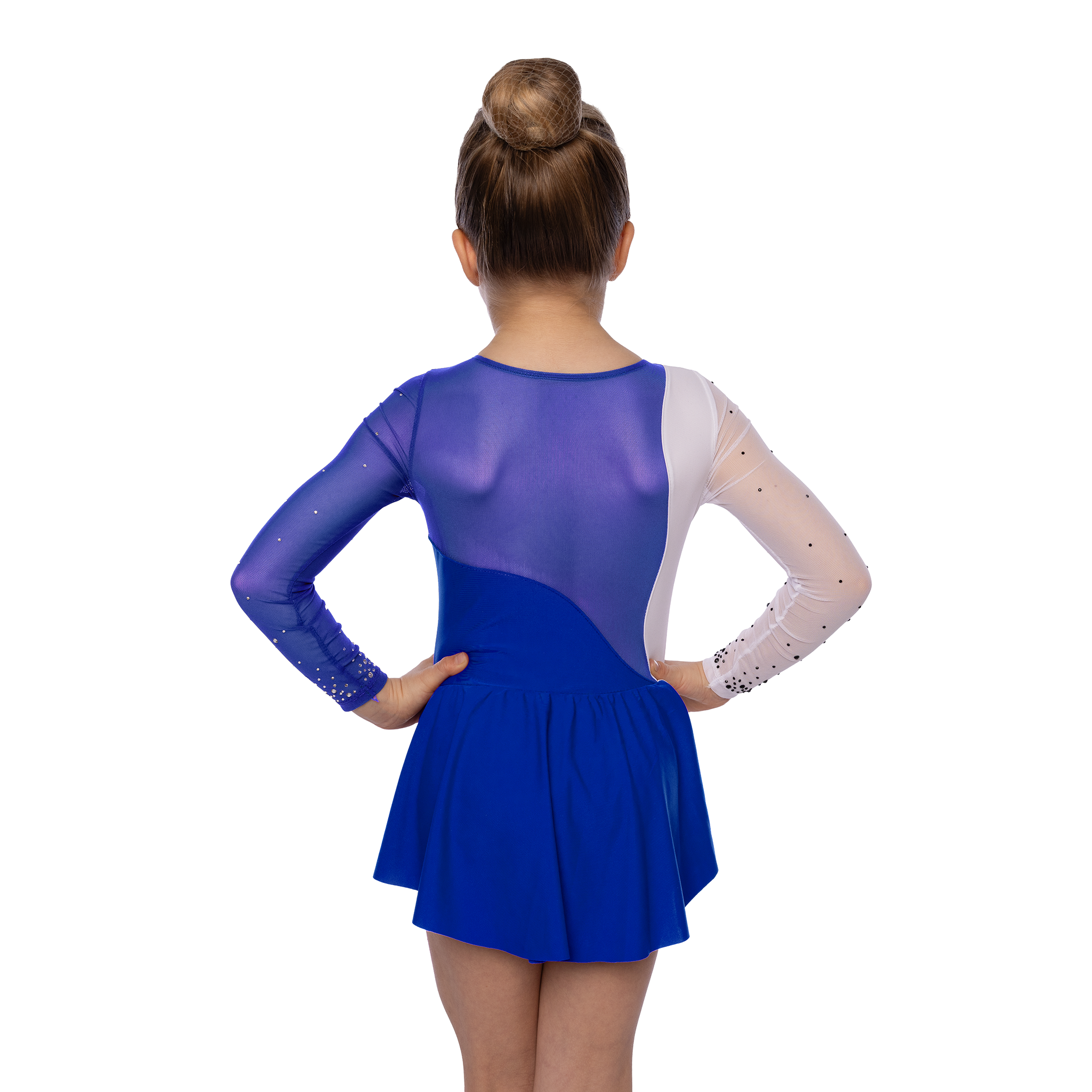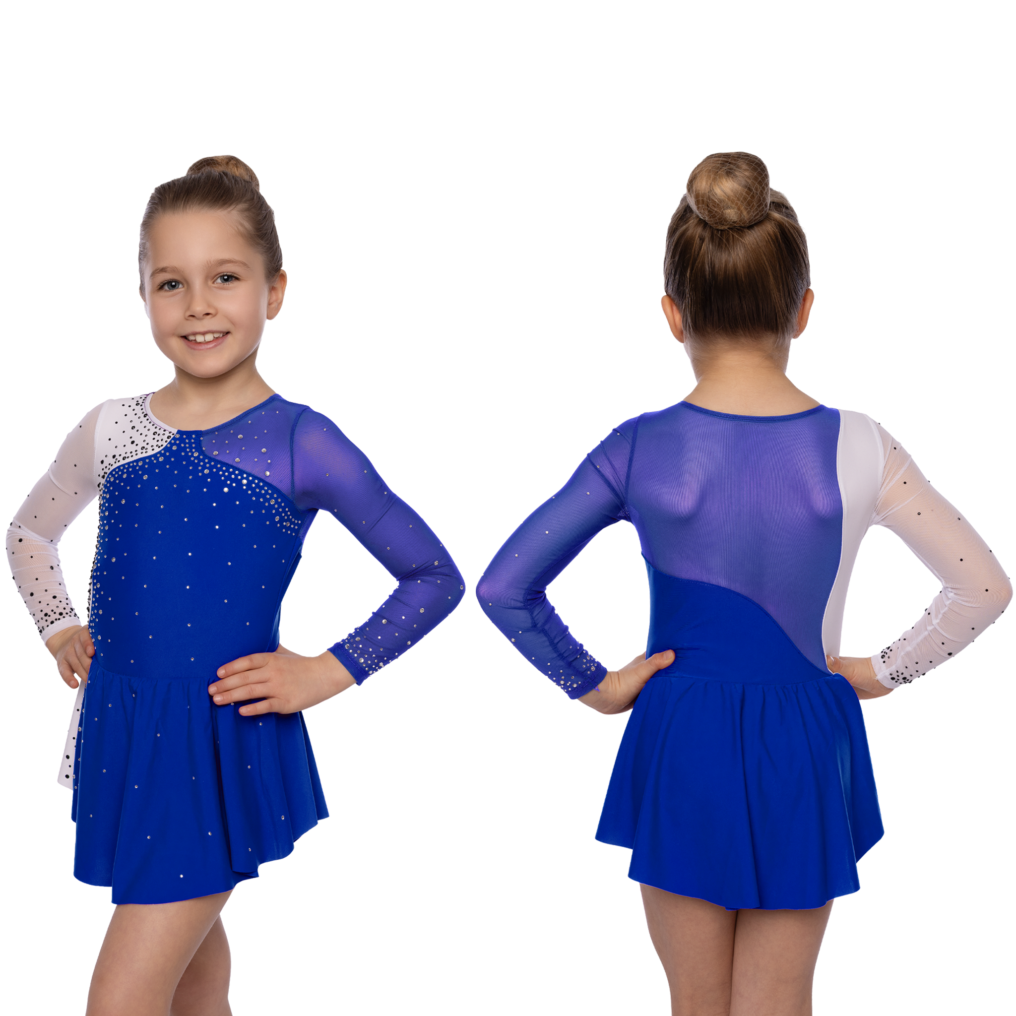 Unser Lieblingskleid! Das gelungene separierte Design mit viel Glitzer bringt Dynamik auf das Eis und setzt die Läuferin toll in Szene.
