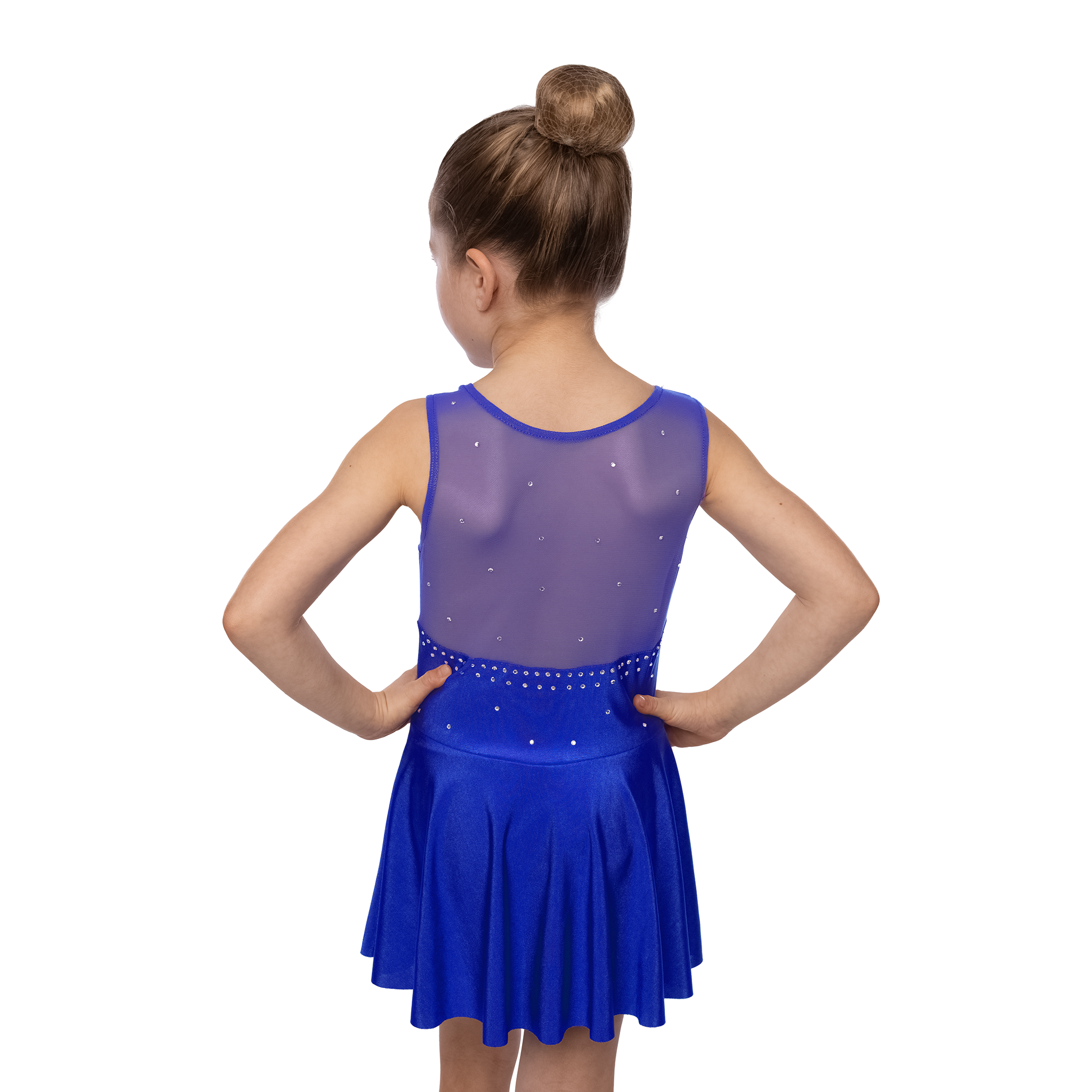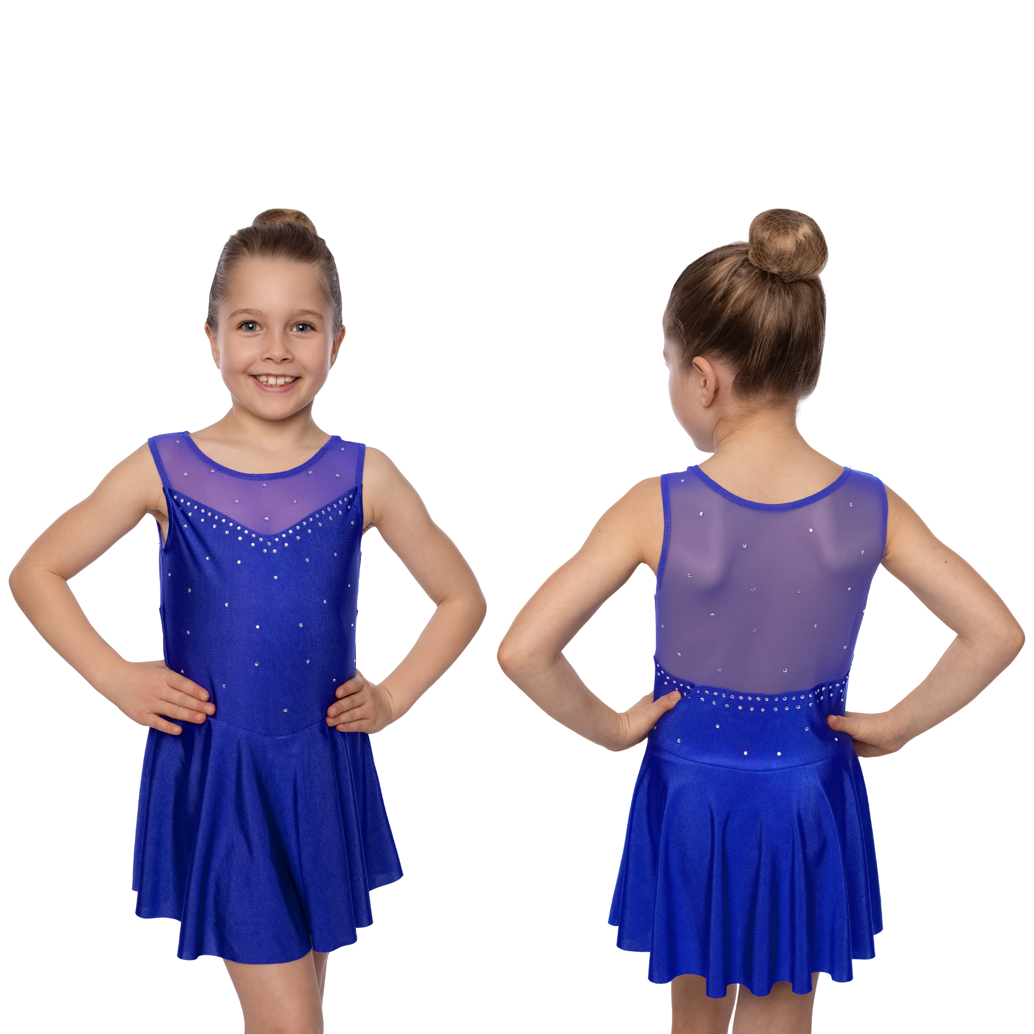 Robe de patinage artistique sans manches. Un modèle classique idéal pour une première représentation réussie. Pour une chaleur et une protection optimales, les petites princesses de la glace devraient idéalement porter cette robe à paillettes par-dessus un justaucorps à manches longues.