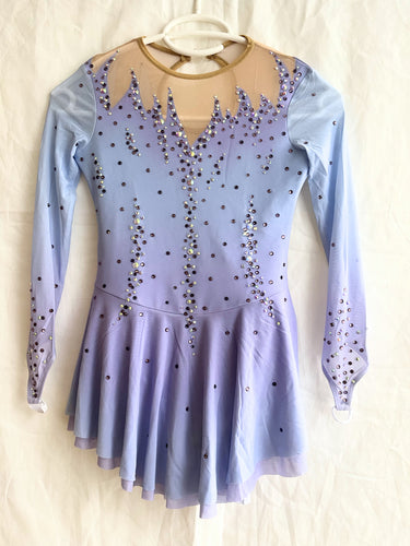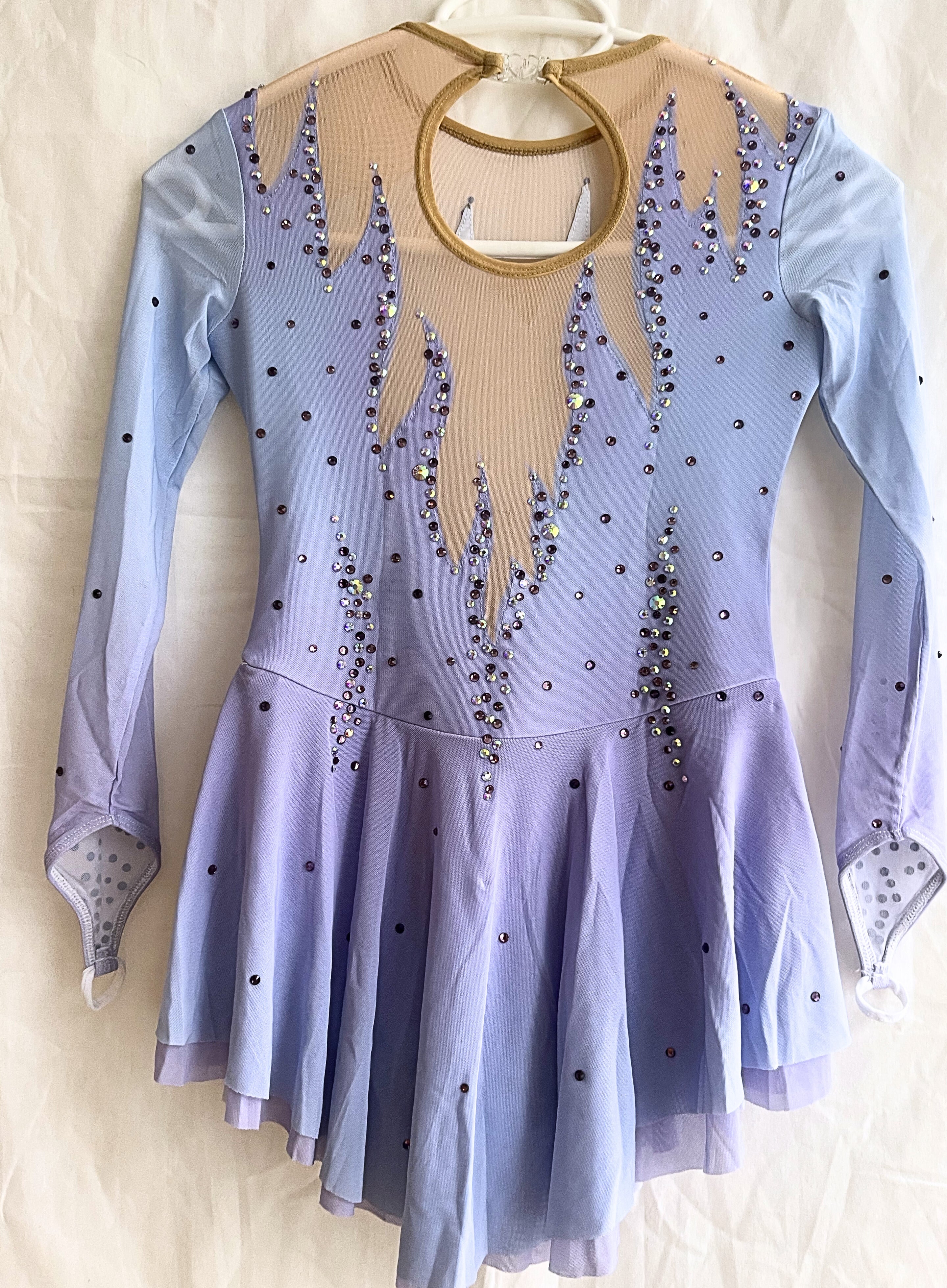 Ein Einzelstück aus unserer künftigen Premium-Kollektion. Kräftiger Stoff, viel Glitzer und ein toller Farbverlauf hellblau-violett-flieder machen dieses Kürkleid zu etwas ganz Besonderem.