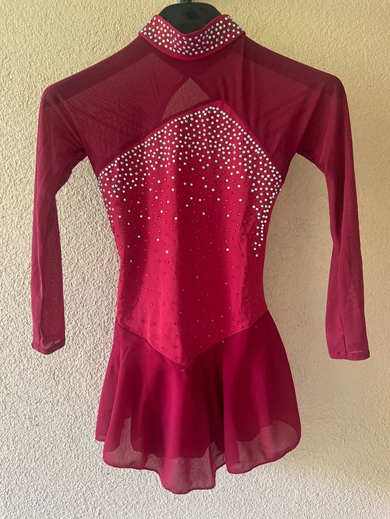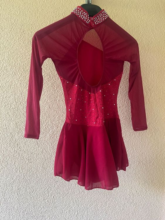 Elegantes klassisches Kürkleid in warmen, dunklen Burgunder-Rot mit Glitzer. Für Kür und Test.