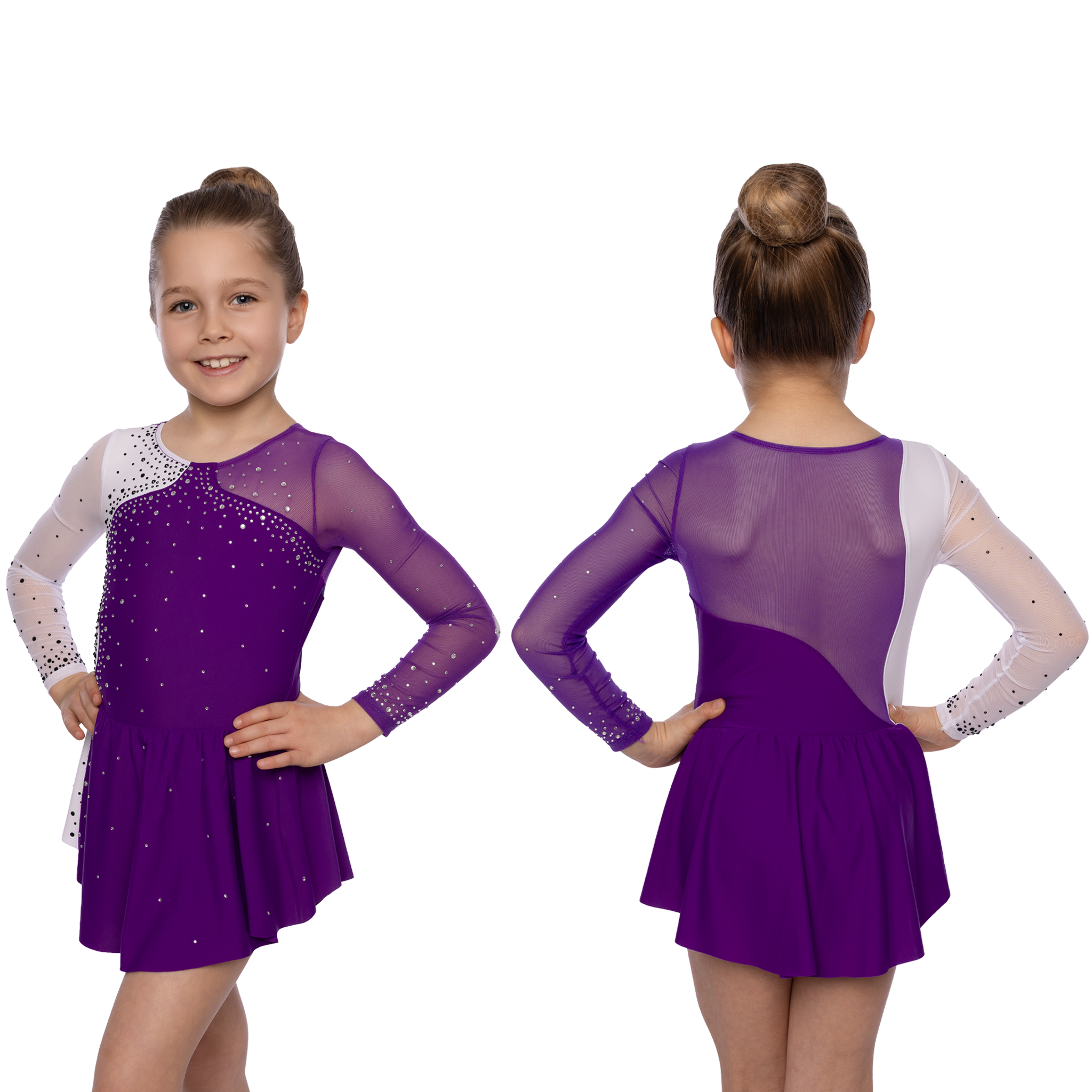 Unser Lieblingskleid! Das gelungene separierte Design mit viel Glitzer bringt Dynamik auf das Eis und setzt die Läuferin toll in Szene.